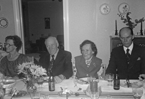 Bildtext: Not. på foto: Anna och Oscars 80-årsdag den 4 okt. 1976. Fr. v. Ann-Kristin Åstrand (Margits dotter), Håkan Skytt, Margit Eriksson, Margareta Eriksson (Margits dotter), Rune Eriksson (Margits man). sökord: kalas motivkategori: Fritid id:10671 Fotograf: fotoår: 1976 bildnummer: MER-280 förening: Delsbo Hembygdsförening land: SE motivplats: Gävleborg, Hudiksvall, Delsbo teknik: 12,6 x 8,6 cm, skannad påsiktsbild, 16-bitars gråskala, 300 ppi rättighet:(föreningen ovan om ej annat anges.) Delsbo Hembygdsförening originalplats: (visas ej publikt) släktboken: publiceras: ja säljas: tidigare nr: samling: (MER) Margareta (X) Eriksson skick: reg av: BF/Delsbo, 0653-104 59, 073-044 82 03 reg datum: 2025-10-13 |