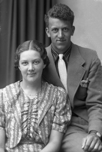 Längst fram fyra från vänster Olle Edström f 1921 och näst längst ut till höger samma rad Sven Nordin f 1921 bägge från Hålsänge, Svens far Adolf Nordin fiskare på Våtnäs. Sven övertog sedan båten och blev fiskare också innan han senare började på Iggesunds bruk.
