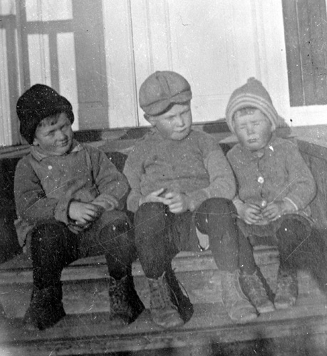 Bildtext: Fjälebor. Fr.V Bertil Eriksson, Karl & Karin Åkerlund, Per Jonsson, (skymd Gunnar Eriksson), Erik Eriksson, Johan Åkerlund, Per Eriksson, Alma Fernlund, Signe Östlin, Tilda Jonsson, Jenny Lindfors från Borka, Anna Eriksson, Sonja Åkerlund, Linnea Åkerlund från Finnika, Ann Mari Eriksson, Axel Eriksson, Sture Åkerlund från Finnika, Alve Eriksson, Jenny Eriksson, Per Olov Eriksson, Per Åke Eriksson, Bror Eriksson, Stig Eriksson.