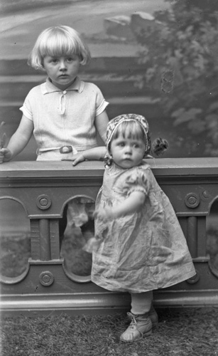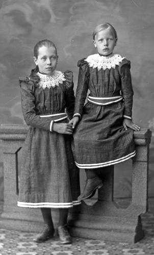 Bildtext: Karin (Kalla) Bergman, Hålsänge med sin dotter Karin. Kalla född 4 augusti 1864, dotter till Lars Hansson Bergman (1839-1925) och h. h. Karin Larsdotter (1839-1877). Kalla, ensamstående mor till dottern Karin (född 1891), tog ut sin arvslott och med hjälp av sin far byggde hon upp hemmanet Hålsänge 2.7 (se bild cae-priv-8) och drev jordbruket tills mågen Axel Edström från Mekrossla gifte sig (1912) med dottern Karin och tog över. Dottern Karin gick bort i tuberkulos 1936. Kalla blev 86 år, avled i december 1950.