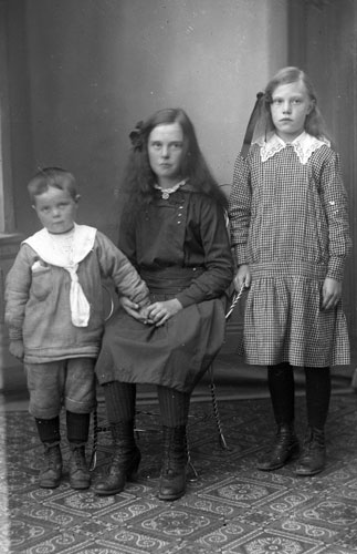 Viktoria Ström (f 1883) med barnen Karl (f 1902) och Greta (f 1904). Se även bild en-d-147 och en-p-118 och en-q-30 och en-v-006