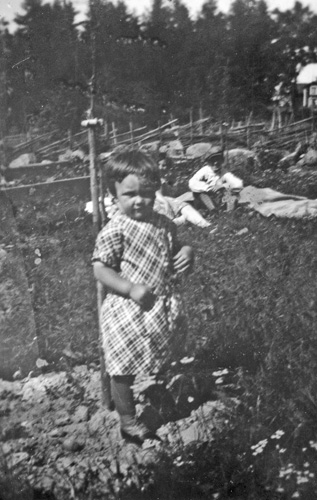 Bildtext: Uppgiftslämnaren (Birgitta Fröberg) skriver: Kvinnan till höger är min mamma Greta Boström född Hedlund från Finnika, bredvid i ljus klänning är Aina Westling även hon från Finnika. Bilden kan vara taget vid mormors husknut i Finnika.