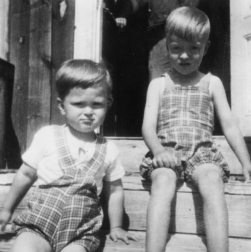 Bildtext: Eric Lundblad skottar snö tillsammans med ett barnbarn vid huset i Bro (Kittelbacken)