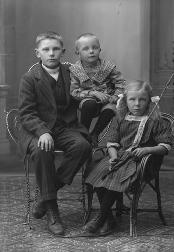 Bildtext: från vänster; Elin Bergqvist/Olsson, Hedvig och Arvid Enström, framför ses Eva Enström. Fotot från Grängsjö. Det är Västigården som skymtar i bakgrunden, bakom Grängsjön. Bilen är en Morris Minor. Denna bil kallades i folkmun på 50-talet för "Bjuråkers moped". Mest vanlig i Bjuråker. Jonny Dahlström började sin bilförsäljarkarriär i denna bygd.
