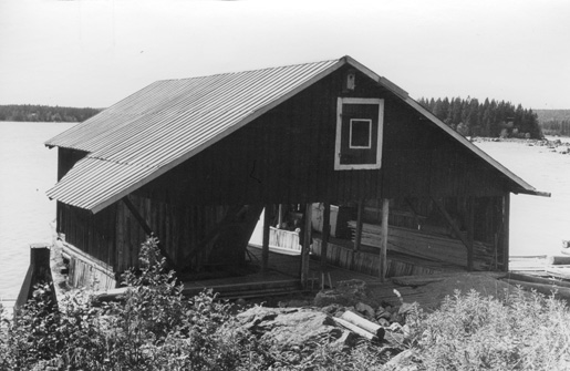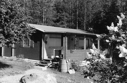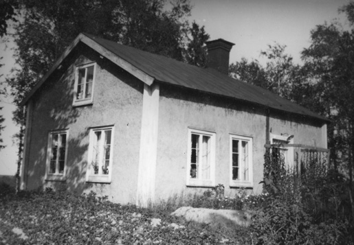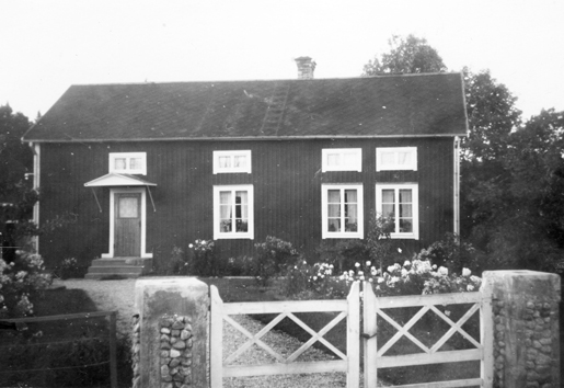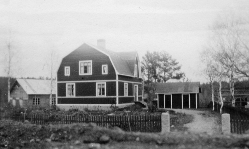 Bildtext: Gustav Johanssons gård i Finnika. Bilden tagen från väster. Ladugården till höger revs på kanske 1990-talet, och det lilla gårdshuset i mitten långt dessförinnan. Alternativ tolkning: Kan vara Valter Johansson hus där Kjell Johansson bor nu. Inkommen bildsynpunkt håller den senaste tolkningen som riktig