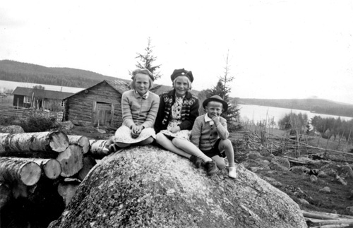 Bildtext: På Västerockavallen i Enånger. I gröngräset sitter i bakre raden fr.v. Axel Rehnström Vedmora, Vivi Svedberg Annefors, Erik Svedberg Annefors. Främst fr.v. Anna Rehnström Annefors, Kristina Frisk Vedmora, Eivor Rehnström Vedmora, Ida Rehnström Vedmora med Sune Svedberg Annefors i knät, Einy Svedberg Annefors och Gunni Rehnström Vedmora.