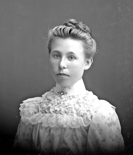 Sökord: Motivkategori:porträtt, kvinna Id:9870 Fotograf: Erika Nordin Fotoår: okänt Bildnummer: en-ag-181 Förening: Enångers Hembygdsförening Land: SE Motivplats: Gävleborg, Enånger Teknik: Inskannad glasplåt 9x12 cm beskuren Rättighet: Enångers Hembygdsförening Originalplats: (visas ej publikt)