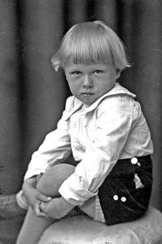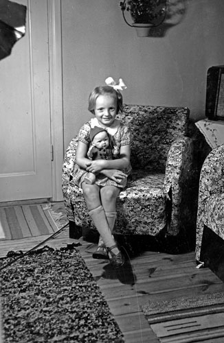 Bildtext: Mannen längst fram uppges vara siste "rättaren" på ålderdomshemmet i Tosätter, efternamn Brink. Och flickan i vit mössa är hans dotter Maj-Lis Brink f 1947. (Uppgiftslämnaren gick i skolan med henne i Tosätter åren 1954 - 1955).
