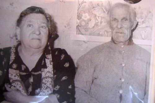Bildtext: Bild på de som byggde huset i Långskär, Hålsänge (se bild birt-001 och humus-034b från det tillfälle gården brann). Bilden föreställer Andreas (1865-1953) och Margareta Bergqvist (1877-1959). De fick tio barn (åren 1900-1923), varav nio blev vuxna. Andreas var fiskare på Våtnäs. Kompletterande bildsynpunkt: Andreas Bergqvists föräldrar finns på foto nr en-af-173. De hette Anders Andersson Bergqvist (1825-1909) och Karin Nilsdotter (1835-1915). Andreas och Margareta B:s barn finns (några av dem) på foto nr 8938, hebor-38, en-k-68 och en-s-65. Andreas B hade en bror som hette Nils B och hans fru, Erika Strandberg, finns på foto nr: en-ai-275.