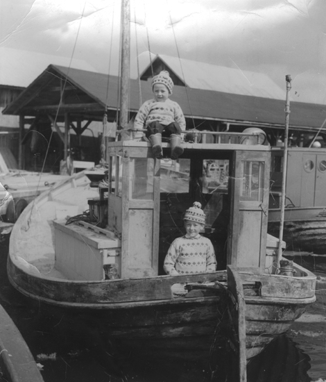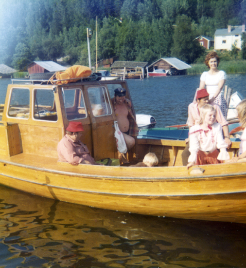 Bildtext: oljemålning utförd av Enångerskonstnären Elin Erixon. Motivplatsen sannolikt Bergön i Njutångers skärgård. Jämför bild nr jl-priv-120 bland Njutångers bilder