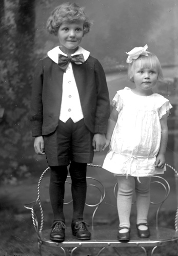 Elvira Englin (g Högblom) f 1892 med brodern Erik f 1904, Änga