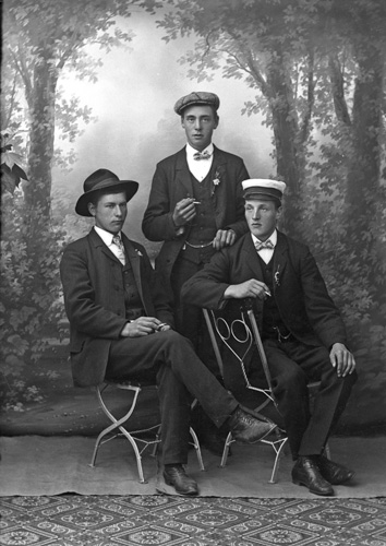 Stående Albin Bodin. Sittande till höger hans bror Per Bodin. Näcksjö. Den tredje okänd.
