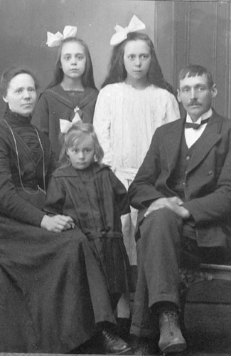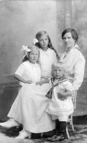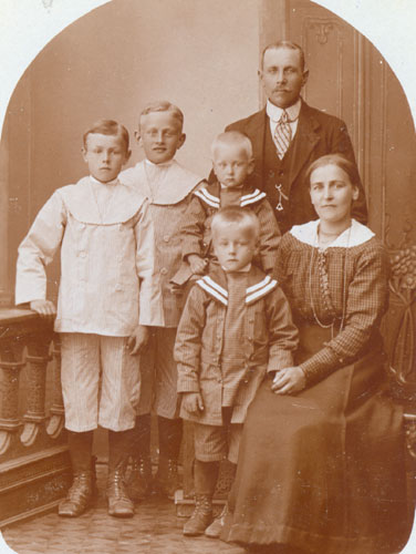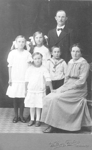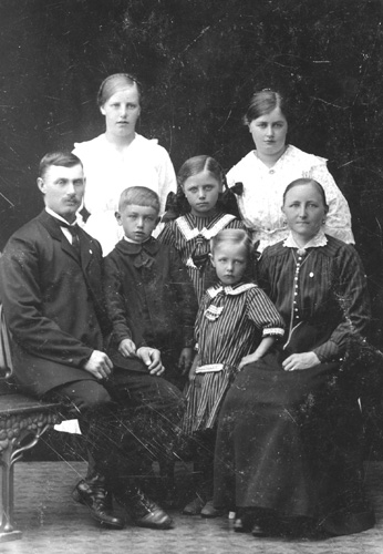 Bildtext: Familjen Per och Hanna Sättlin, "Annersanners", Tosätter Enånger. Barnen; Dagny(f.1900), Karin(f.1904), Ada(f.1907), Erik(f.1910), Elin(f.1913).