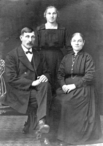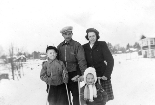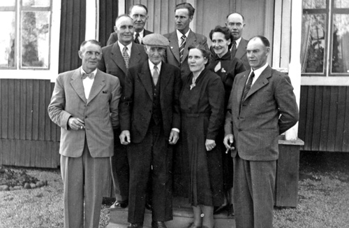 Bildtext: Från vänster; Jonas Frisk(18/12 1856-25/1 1942), August Frisk(3/7 1881-6/2 1931), Kristina Frisk(6/5 1877-3/8 1957)(f. Svedlund), Naemi Frisk(16/1-1916 )(g. Bostedt), Ida Rehnström(16/9 1902-23/3 1990). Bilden från "Petters" i Trogsta Forsa, dit August med familj flyttade 1918. 1920 flyttade de tillbaka till Vedmora Enånger. Pappa till Naemi är Einar Frisk som sedan blev byggmästare i Hudiksvall. Huset finns kvar och bebos av Göran Reimner med familj.