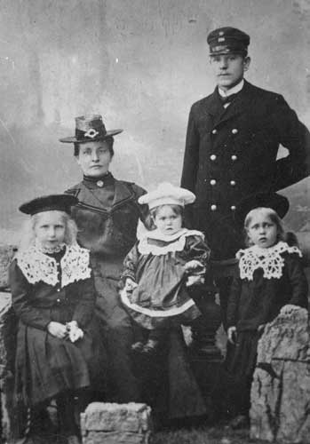 Bildtext: Karin och Ferdinand Molin, sonen Bertil med dotter Maritta. Bildsynpunkt meddelar: Detta är fyra generationer:J ohan Jansson, Karin Molin, Bertil Molin med dotter Maritta