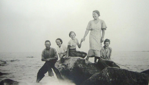 vänster: Edvin (1902-1986), Hanna (1910-1970), Ulla (1915-2002) och Knut (1917-1995). Bilden är tagen på stranden, Våtnäs. Syskonen var barn t. Andreas och