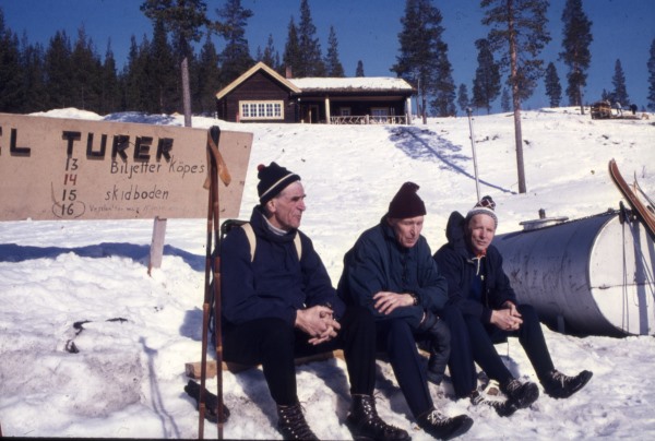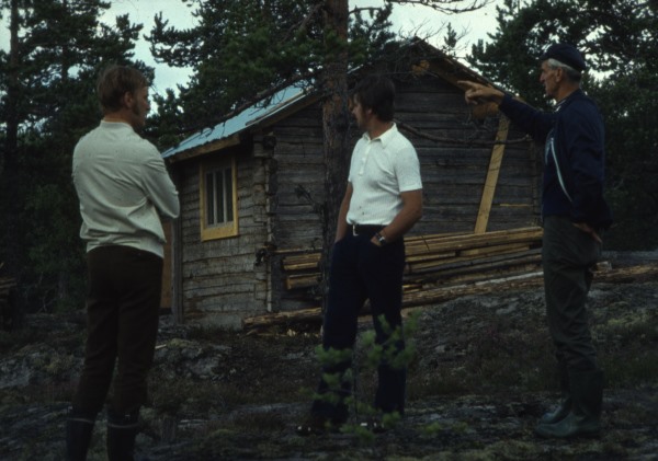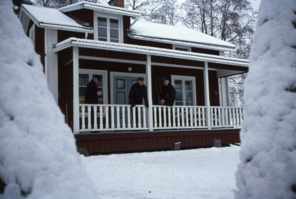 Bildtext: Klångsta Bygdegård. Längst till höger i gruppen av män är majoren Jan Hegrelius, Gävle