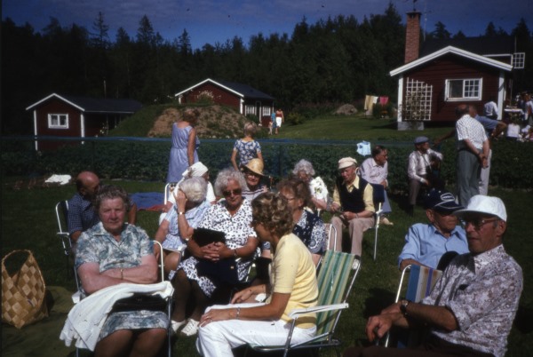 Sökord: Kvinnor Män Hus Motivkategori:Festligheter Id:10719 Fotograf: Erik Hed Fotoår: Bildnummer: eh-dia-96 Förening: Forsa Sockens Hembygdsförening Land: SE Motivplats: Gävleborg, Hudiksvall, Forsa, Finnsjövallen Teknik: inskannad småbildsdia Rättighet: Hembygdsförening Originalplats: (visas ej publikt)