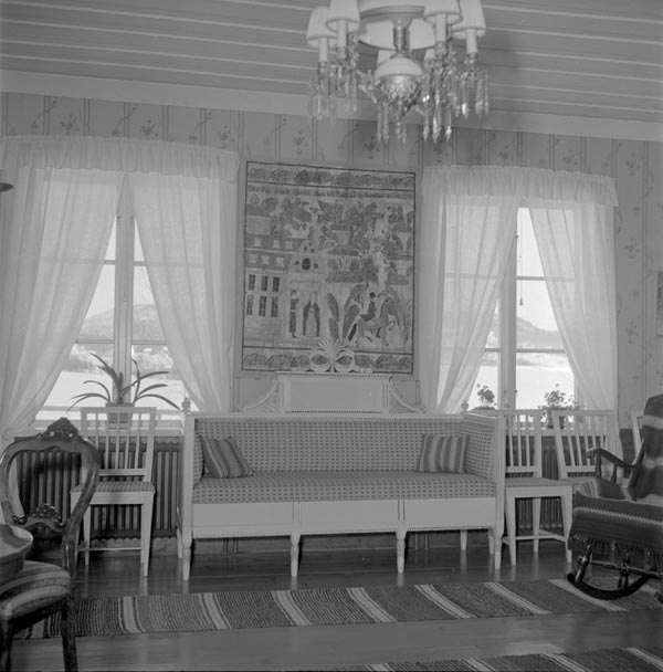 Sökord: stolar, soffa, väggbonad, taklampa, två fönster, gungstol Motivkategori:inomhusmiljö Id:10885 Fotograf: PH Lindh Fotoår: Säkert 1957-1958 Bildnummer: PH002-002 Förening: Forsa Sockens Hembygdsförening Land: SE Motivplats: Gävleborg, Hudiksvall, Forsa Teknik: Inskannat negativ 6 x 6 cm s/v Rättighet: Originalplats: (visas ej publikt)