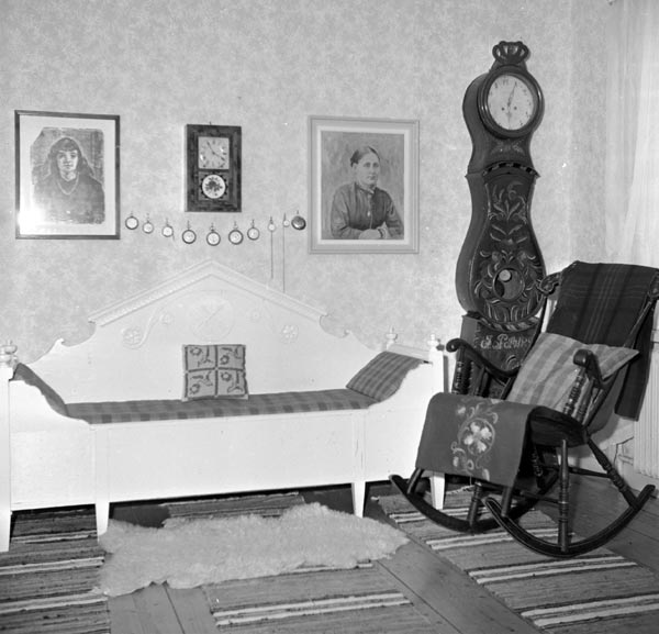 Sökord: soffa, gungstol, golvur, en samling fickur, tavlor, skinnfäll Motivkategori:inomhusmiljö Id:12125 Fotograf: PH Lindh Fotoår: Troligen 1958 Bildnummer: PH015-011 Förening: Forsa Sockens Hembygdsförening Land: SE Motivplats: Gävleborg, Hudiksvall, Forsa Teknik: Inskannat negativ 6 x 6 cm s/v Rättighet: Forsa Sockens Hembygdsförening Originalplats: (visas ej publikt)