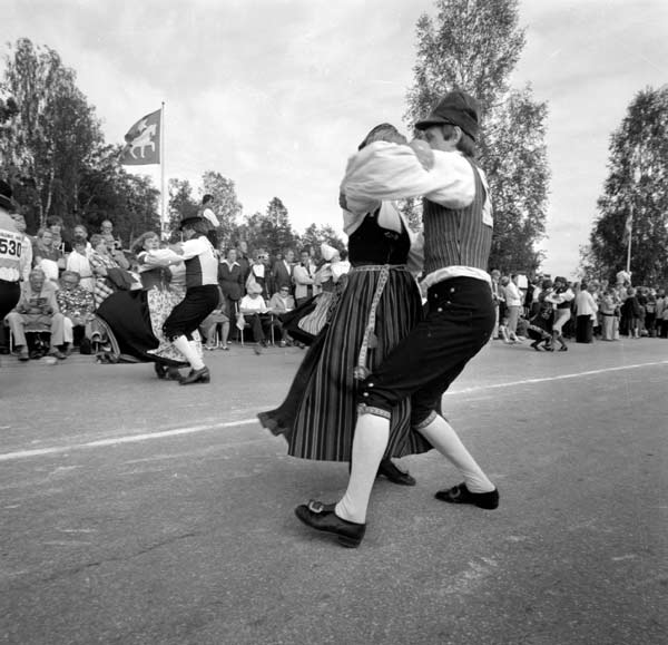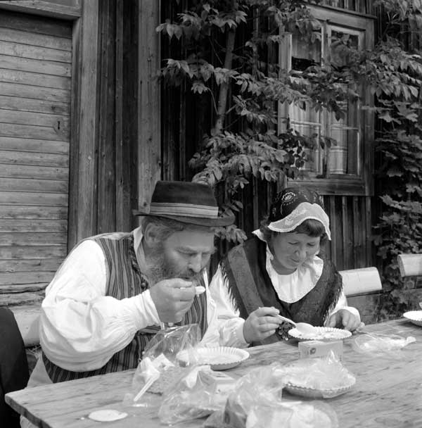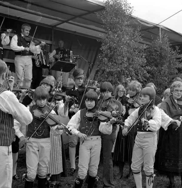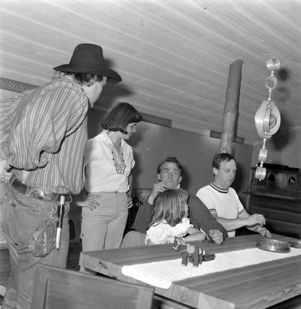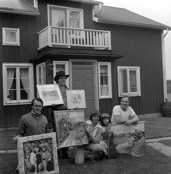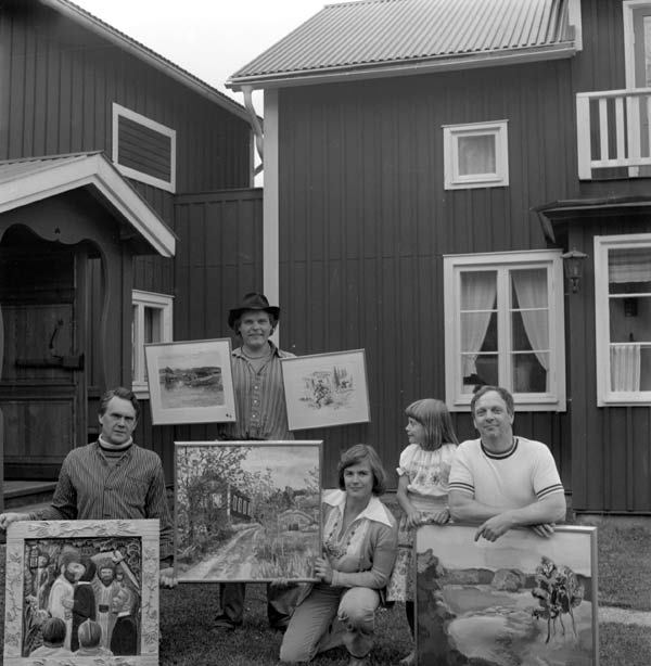 Bildtext: Från vänster: Bengt Ivar Liljedahl, Ing Mari Äng med dotter, "Arve vid Ån" Arve Lindström? och Palle Åberg.