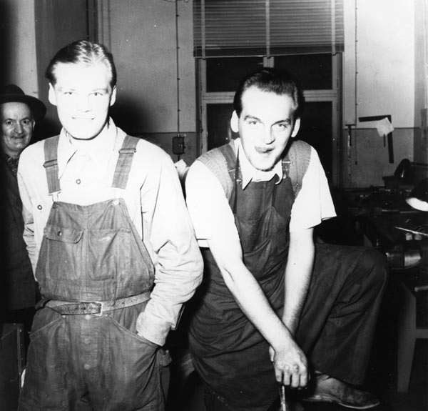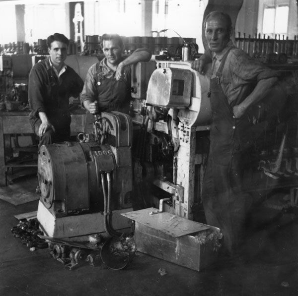 Bildtext: Holma Helsingland. Montering. Ringspinnare. Från vänster: Okänd från Irland, Arnold Olsson och Ragnar Larsson.