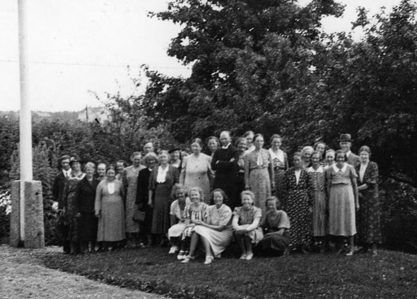 Bildtext: Vårträff med revy på Klångsta bygdegård kanske 1985. Birgitta Hamrén Näsviken, Holger Andersson Byberg, Petters-Barbro Olsson Rumsta, Sven-Olov Lönn Trogsta, Ann Marie Eriksson Näsviken, Kent Lindh Rumsta, Eva Lisa Olsson Ölsund och Erik Nilsson Skarmyra ”Västnängan”.