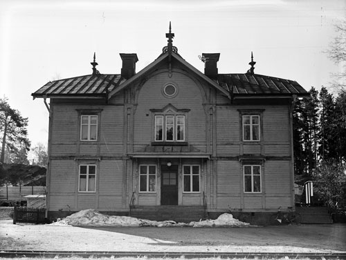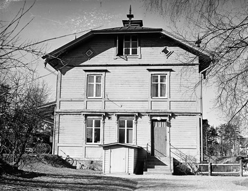 Bildtext: Udéns affär i Sörforsa. Sortering av ransoneringskuponger under 1:a världskriget (1914-18). Fr. v. Einar Lindström, bodbiträde (okänd), Kristina Udén, Anna Andersdotter (syster till Kristina Udén) och Per Udén. Einar Lindström, bodbiträde, gifte sig med Linnéa Udén, dotter till Kristina och Per Udén. Per Udén (d. 1947) drev handelsboden i Sörforsa, kom från Enånger där han varit sågverksarbetare. Per Udén drev också bageri nära handelsboden, ägde fäbod med mark på "Ön" samt skogsskiften vid Skarmyra vari ingick Nyvallen. Kristina, hustru till Per Udén, f. Andersdotter från Sörgården, dotter till Anders Larsson. Hustrun död 1948. Tack Brita-Stina Lugn (barnbarn till Kristina och Per Udén) för foto och information.