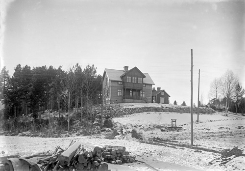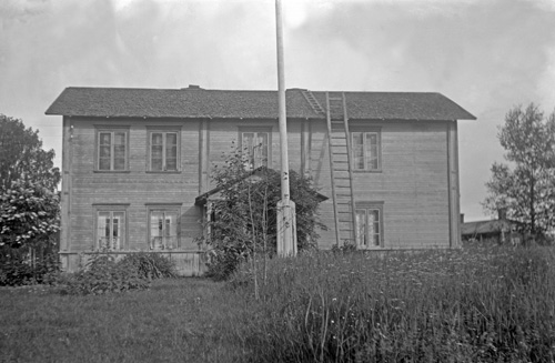 Bildtext: Ungdomskretsen med E. Lundvik, hos Axel och Marta Larsson i Hamre, Näsviken. Mannen längst upp till höger Häradsdomare Jonas Larsson från Berge, Forsadalen. Detta var hans hem på 30-talet då en dotter övertagit gården i Berge. Intill honom står hans sonhustru Karin från Östra Smedsgården, gift med Olof Larsson. Femte mannen från vänster Axel Larsson, Hamre.