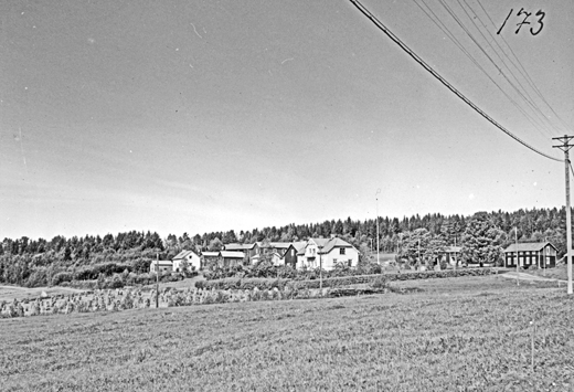 Bildtext: Hamre vänstra huset byggdes av Henning Pettersson. Det högra byggdes av Hilding Olsson "Ket-Hilding". Nu bor Bonny Sjöblom där. Gerd Östberg säger att i huset till hö där Bonny Sjöblom bor idag, bodde fam Gustav o Milda Östberg, med barnen Elisabeth,Lena o Gerd o Bosse Hagström. Mellan år 49-ca 82?