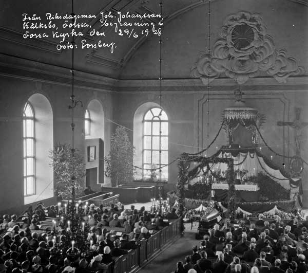 Bildtext: Från riksdagsman Joh. Johansson, Kälkebo, Forsa, begravning i Forsa Kyrka den 29/6 1928.