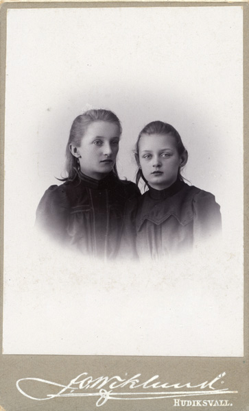Bildtext: Anna Svenssons systrar, nummer fem och sju i en syskonskara på tio. Från vänster: Brita Svensson gift Sundberg f 1891 och Kristina Svensson f 1888 gift med Gunnar Snell, emigrerade till Nordamerika 1907. sökord: motivkategori: personer id:19963 Fotograf: J.O. Wiklund Hudiksvall fotoår: Troligen 1900 bildnummer: STW-042 förening: Forsa Sockens Hembygdsförening land: SE motivplats: Gävleborg, Hudiksvall teknik: Inskannad påsiktsbild, 48-bitars färg, 800 dpi, 6,4 X 10,5 cm rättighet:(föreningen ovan om ej annat anges.) Forsa Sockens Hembygdsförening originalplats: (visas ej publikt) släktboken: 15B15, 15B20 publiceras: ja säljas: tidigare nr: samling: Sture Wistrand skick: reg av: KO reg datum: 2025-11-03 |